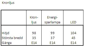 Nedan måtten för lampa med samma uppbyggnad som ovanstående glödtrådslampa: